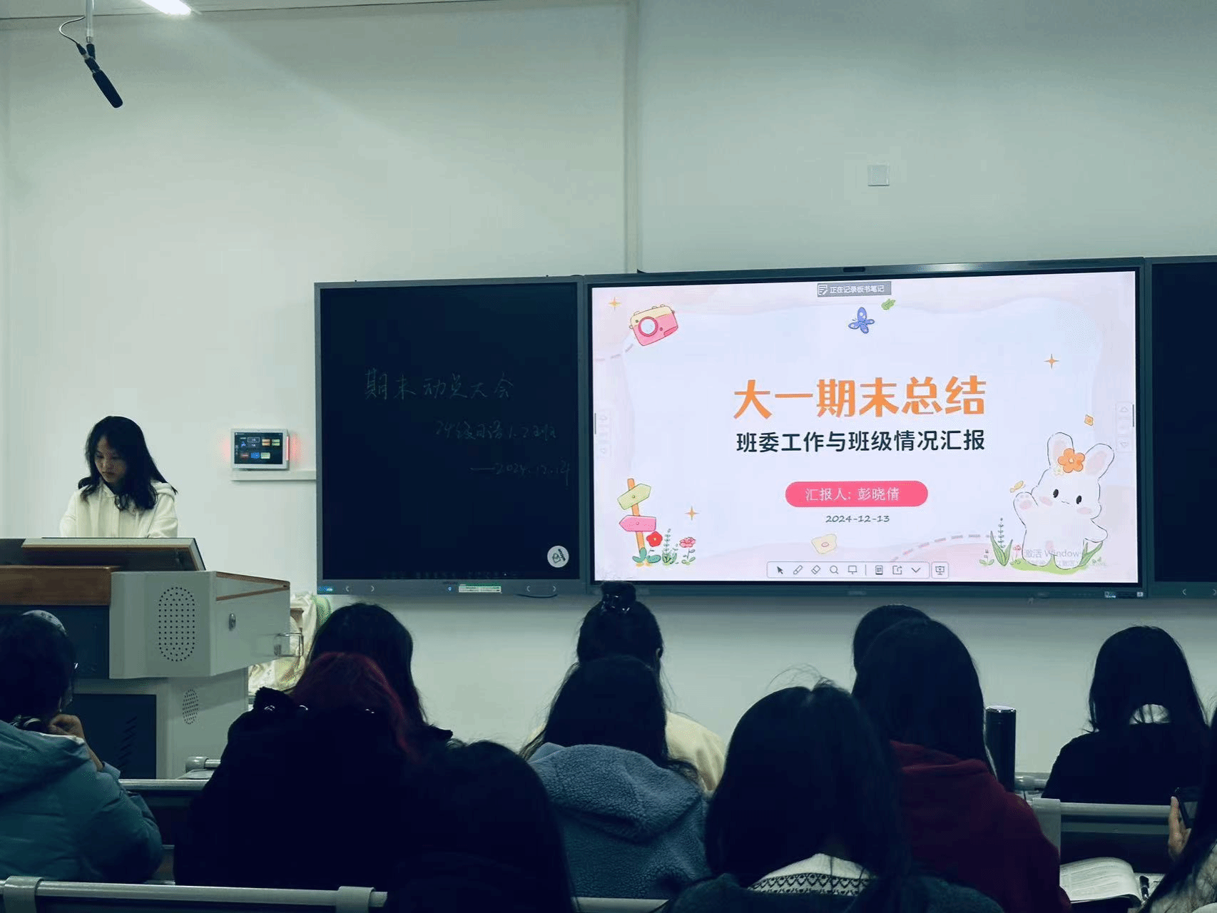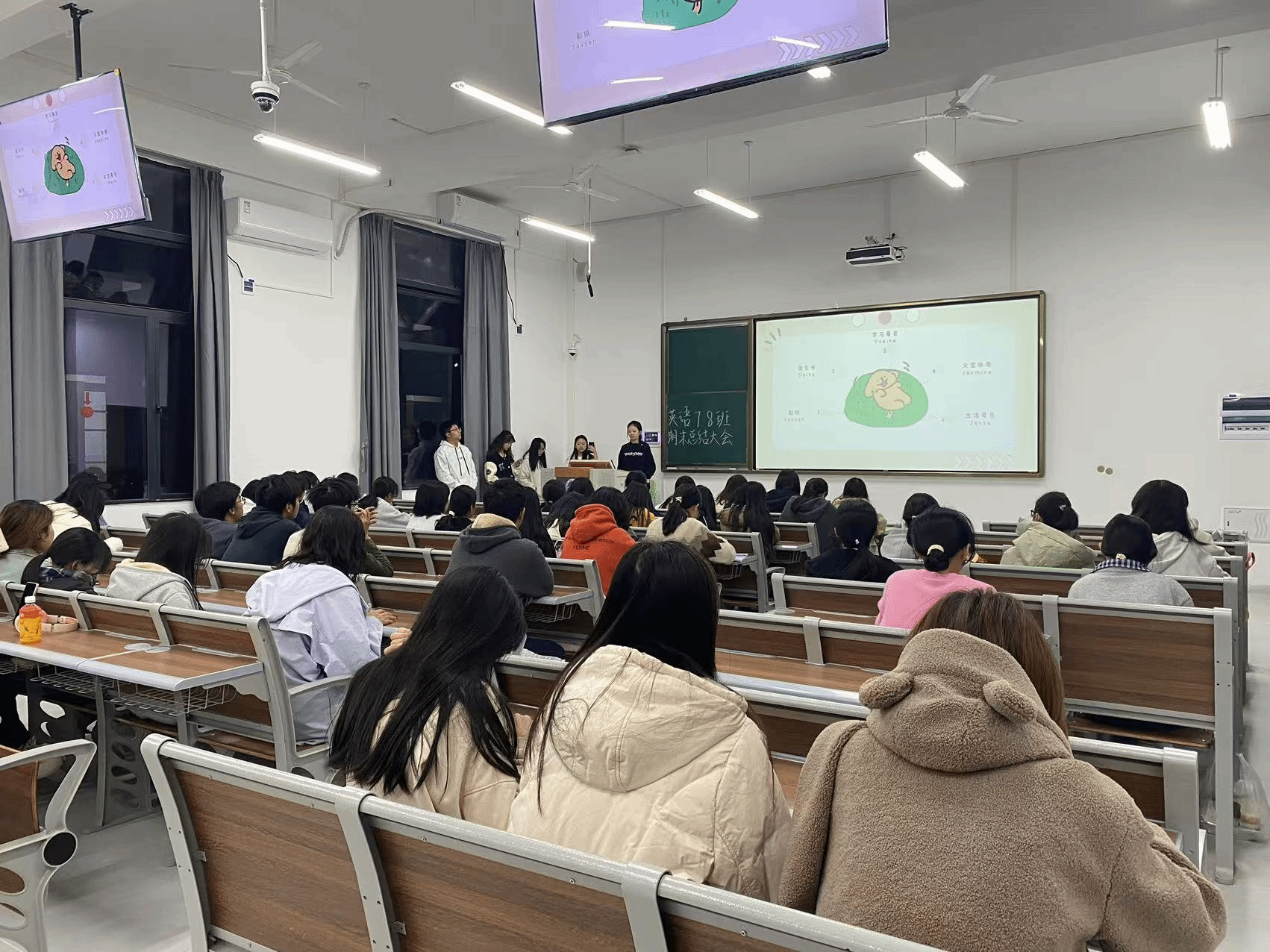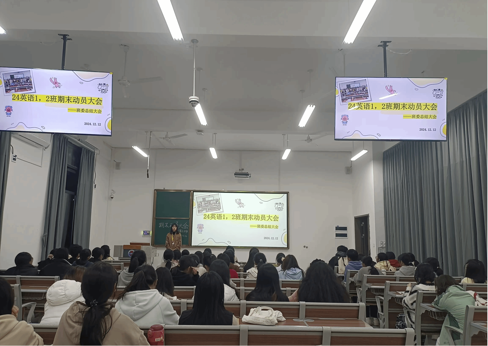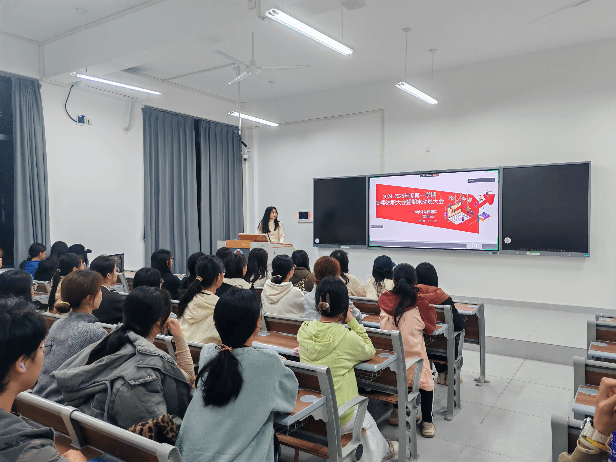 各班级进行期末考试的动员和鼓励,有学习经验的同学上台进行经验的分享,助班师兄师姐为同学进行期末考试相关事项的解读,向与会同学分享了自身在专业学习、温书迎考等方面的经验,强调要提前规划,有条不紊制定合理的学习计划;深入理解,多问自己为什么,尝试从多个角度解读问题;健康作息,保持规律的生活节奏,适量运动。