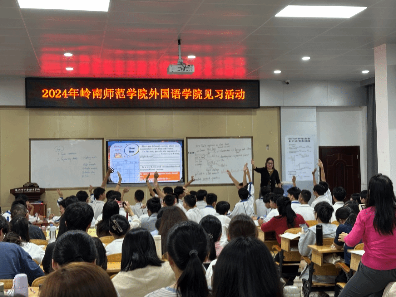 首先,同学们观摩了培才学校英语科组的程杰老师上的一堂公开课。程杰老师围绕一封来自法国的信件展开授课。程老师通过信件中的法国文化元素,如餐桌礼仪等,向学生展示了不同文化之间的差异和特色,有助于拓宽学生的国际视野和跨文化交际能力。