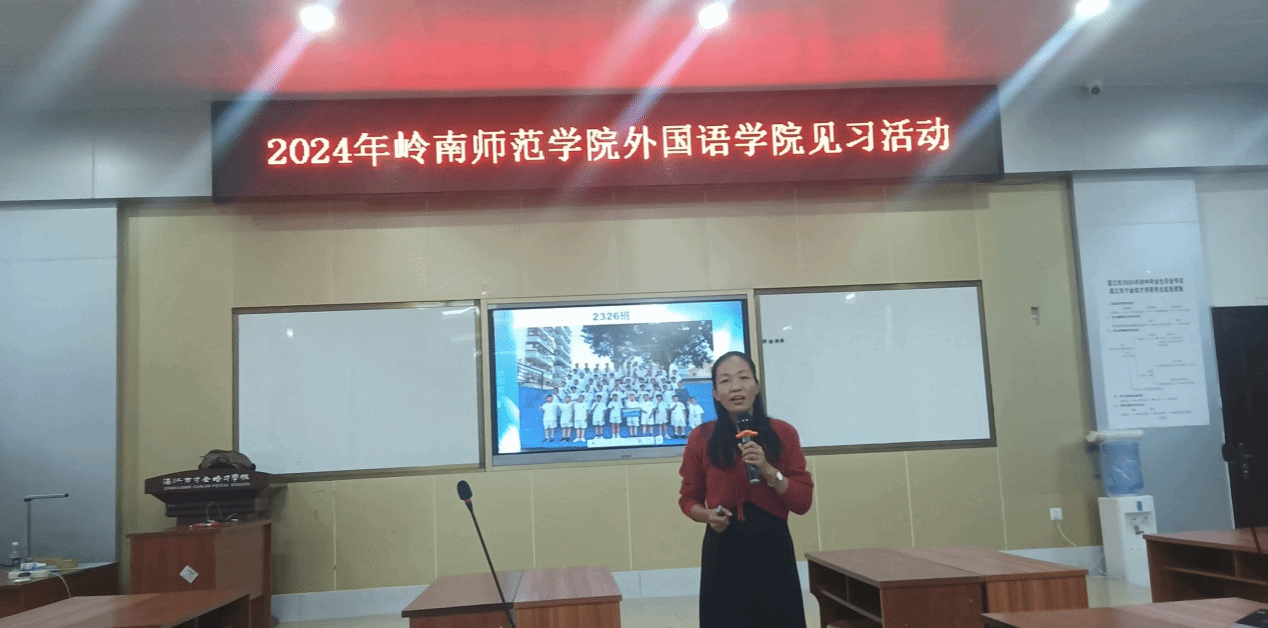 2024年11月22日下午,岭南师范学院外国语学院英语专业在湛江市寸金培才学校宁远楼201会议室开展了2024年“师范生实践能力提升月”活动--教育实习师范生示范课暨见习研习实习中期检查活动。23级学生进行见习,21级实习生进行研习。出席本次活动的人员有寸金培才学校教导处詹福艳主任及英语科组的老师、英语系主任唐汉娟、校级督导陈尚真老师、赤坎区教研员劳业丽以及英语专业23级全体学生和21级部分实习生。