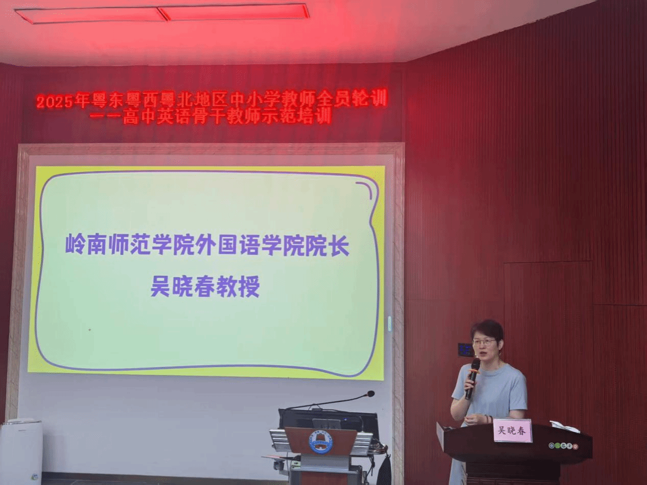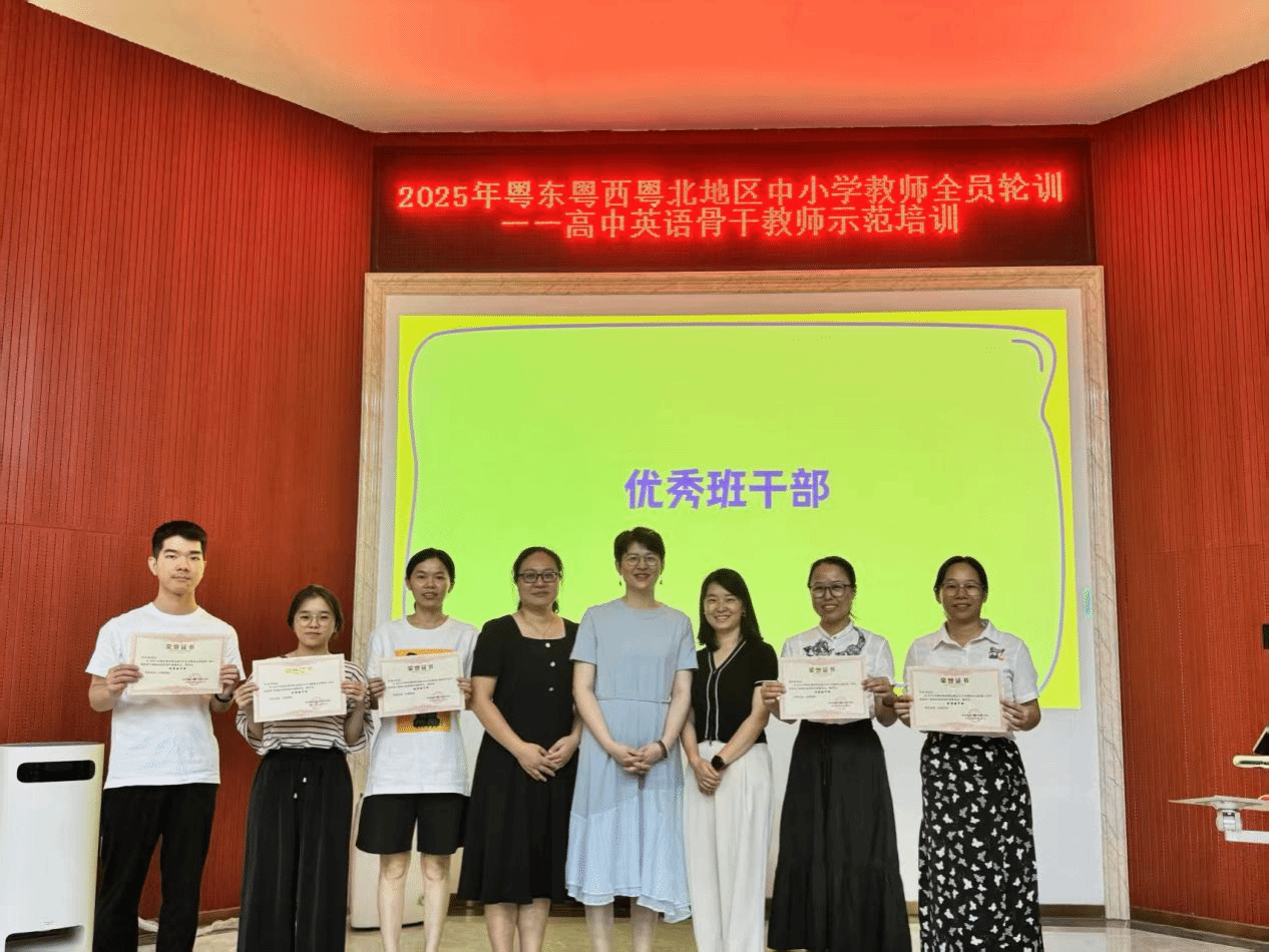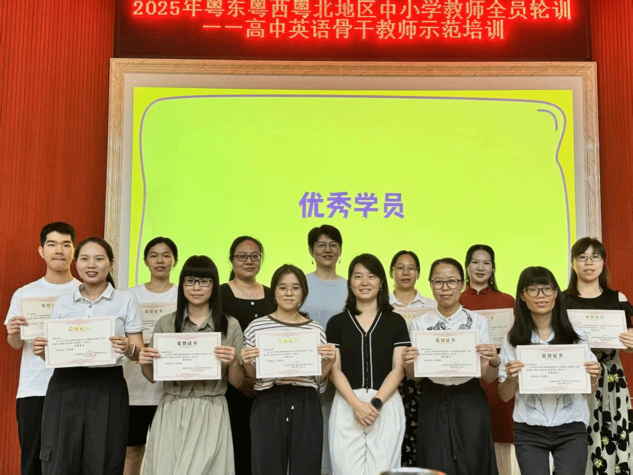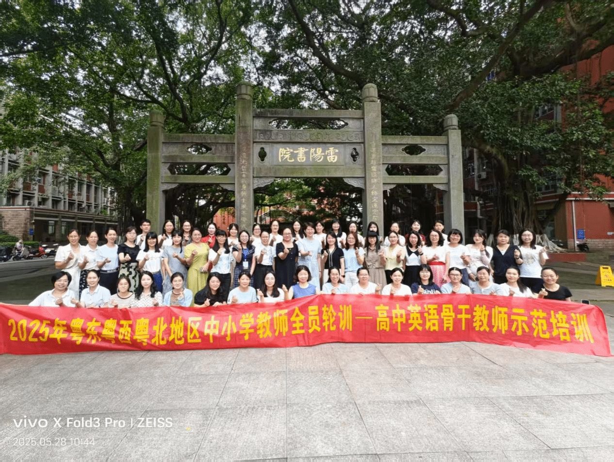 5月28日上午,由岭南师范学院广东省中小学教师发展中心和岭南师范学院外国语学院共同承办的“2025年粤东粤西粤北地区中小学教师全员轮训——高中英语骨干教师示范培训”在榕楼105迎来结业典礼。至此,为期十天的跟岗培训和集中培训正式结束。项目负责人岭南师范学院外国语学院院长吴晓春教授、项目助理外国语学院办公室主任翁惠萍、班主任外国语学院教师孙啸雨及51名学员出席典礼。