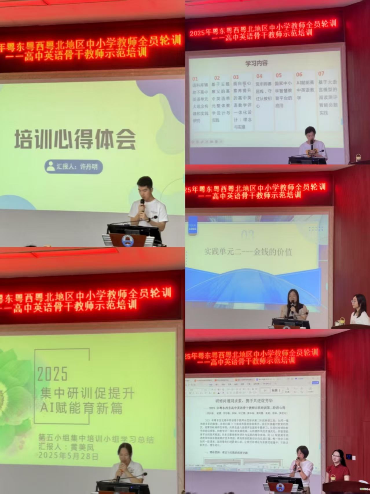 随后,51名学员派五位小组代表进行总结汇报。学员代表从培训内容、培训成果、培训心得等方面分享小组收获。学员均表示,此次培训课程丰富,形式多元,不仅帮助自己夯实理论基础,也拓宽教学思路,体会到终身学习的重要意义。