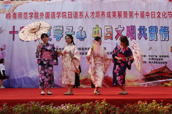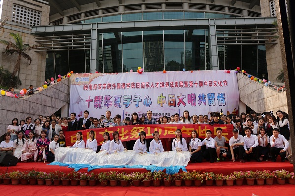 4月15日下午,由岭南师范学院外国语学院主办、日语系承办的“十载华夏学子心,中日文明共留情”——外国语学院日语系人才培养成果展暨第十届中日文化节在新区体育馆门前隆重举行。外国语学院党委冯彩莲书记、梁煜鹏副书记,杨红副院长、周红辉副院长及外语院部分老师、校友出席,也吸引了众多对中日文化感兴趣的同学驻足观看。