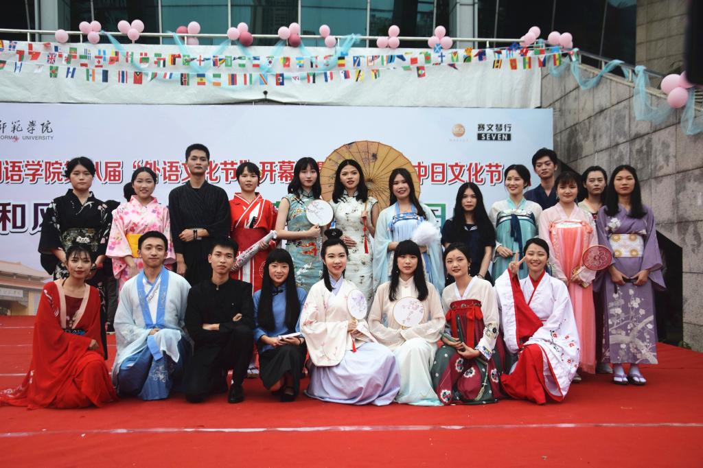 第三篇章——文化交融,是本次活动中的一大特色。古风舞与爵士舞的串烧带大家领略中西方舞蹈各具特色的魅力;非洲留学生们带来热情奔放的卢旺达传统舞蹈,让大家体验别具风格的异域文化;外教老师harrison带来一首日语版的菲律宾的情歌《ikaw》,用歌声来表达国家间的文化融合。紧接着,还有经典压轴节目——中日服饰走秀。在民国服饰、和服、汉服与制服的展示中,我们感受到中日两国别具一格的服饰文化。最后,日语系的老师们登台走秀,与全部演职人员进行合影留念,活动圆满结束。本次活动是我校两型两性办学定位下的第二课堂的延伸,使学生在课外实践活动中体验不同国家文化间的交融与传承。