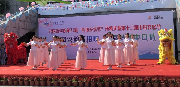 本次活动分为文艺表演及摊位文化体验两部分。主持人介绍出席嘉宾后,由杨红副院长兼日语系主任致开幕词。杨红院长首先对嘉宾表示热烈的欢迎,然后简单介绍了中日文化节的宗旨、发展历程,同时介绍了日语系近年来的专业建设、教学、科研等方面发展的优势,最后宣布外国语学院第八届“外语文化节”开幕式暨第十二届中日文化节开幕。