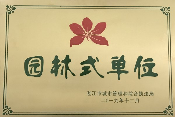 根据《湛江市创建国家生态园林城市实施方案》的文件精神,湛江市为做好创建国家生态园林城市的相关工作,切实提高绿地建设管理水平,提升绿化品质,美化人文环境,打造宜业宜游的海湾绿城,开展 “园林式单位”评审工作。学校凭借过硬的校园环境建设成果,经过初审推荐、材料申报审查、以及专家现场考评等环节,最终获评“园林式单位”称号。全市仅我校和开发区检察院两所单位获此荣誉。