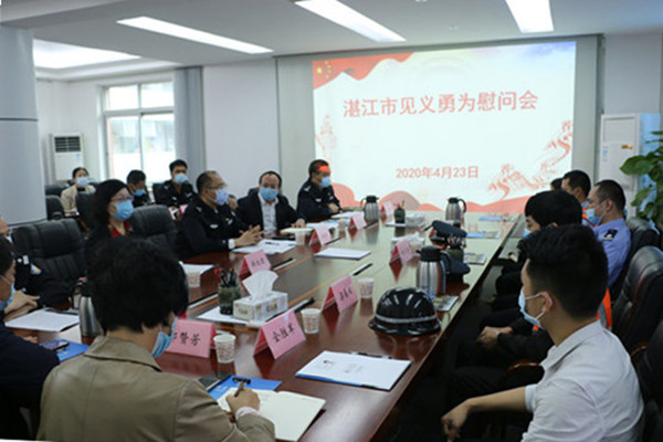会上,骆宏昭和韩桂君向五位队员颁发见义勇为先进个人证书,举行了慰问金发放仪式,赤坎区公安分局也给他们送上慰问金。