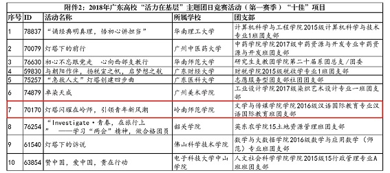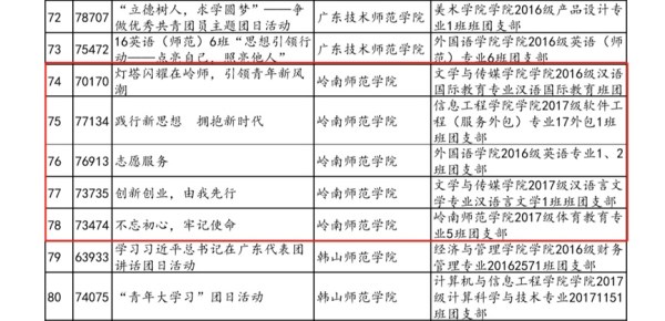 近日,团省委学校部公示了2018年广东省高校“活力在基层”主题团日竞赛活动(第一赛季)省级优秀项目名单,我校2016级汉语国际教育班团支部等5个团支部从全省众多班团支部中脱颖而出,荣获2018年广东省高校“活力在基层”主题团日竞赛活动(第一赛季)“百优”项目等六项省级奖项。