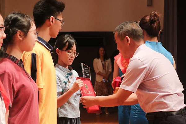 本次比赛由湛江市文明办、湛江市教育局主办,我校和湛江市“优秀传统文化进校园”课题组承办,湛江市孔贤文化传播有限公司协办。我校党委常委、宣传部部长刘坤章,湛江市委宣传部副部长、市文明办主任周伟武,湛江市教育局思政科科长黄良业等领导亲临总决赛现场指导工作。比赛结束后,周伟武等领导为获奖代表队进行颁奖,并与全体参赛选手与嘉宾合影留念。