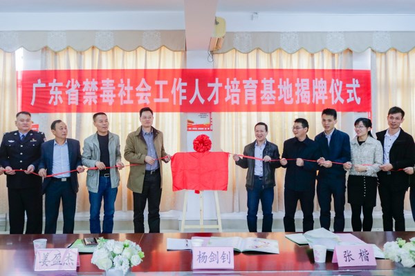12月5日,广东省禁毒社会工作专业人才培育基地揭牌仪式在我校法政学院会议室举行,这是今年省内挂牌成立的第二家禁毒社会工作人才培育基地。广东省公安厅禁毒局预防教育处副处长杨剑钊、法政学院副院长刘鑫淼、广东省社会工作师联合会副秘书长张楷等出席了揭牌仪式。