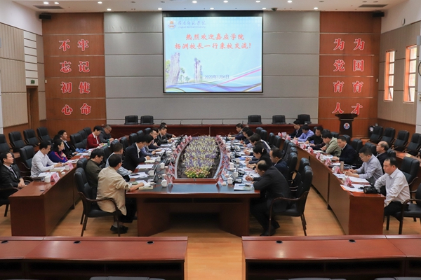 岭师新间中心讯:1月6日上午,嘉应学院校长杨洲、副校长袁铎、副校级领导李友文、校长助理陈建存一行来校交流。学校校长兰艳泽、副校长金义富、校长助理张正栋热情地接待了客人,并在国际会议厅召开交流座谈会,两校相关单位负责人参加交流会。