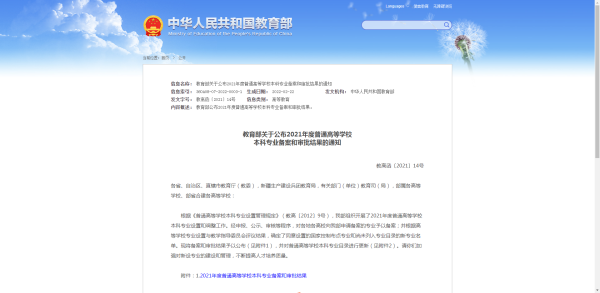 2021年度普通高等学校专业备案和审批结果: