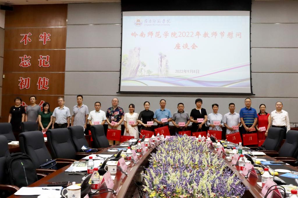岭师新闻中心讯:“你们是教学、科研、管理中的佼佼者,为学校作出了重要贡献,学校为你们骄傲和自豪,教师节中秋节来临之际,祝大家节日快乐!”9月8日上午,学校在国际会议厅召开2022年教师节慰问座谈会,党委书记兰艳泽、校长阳爱民为15位优秀教师代表送上节日慰问礼品。大家汇聚一堂,共话个人发展与学校发展,共谋学校进一步发展,副校长金义富主持会议。