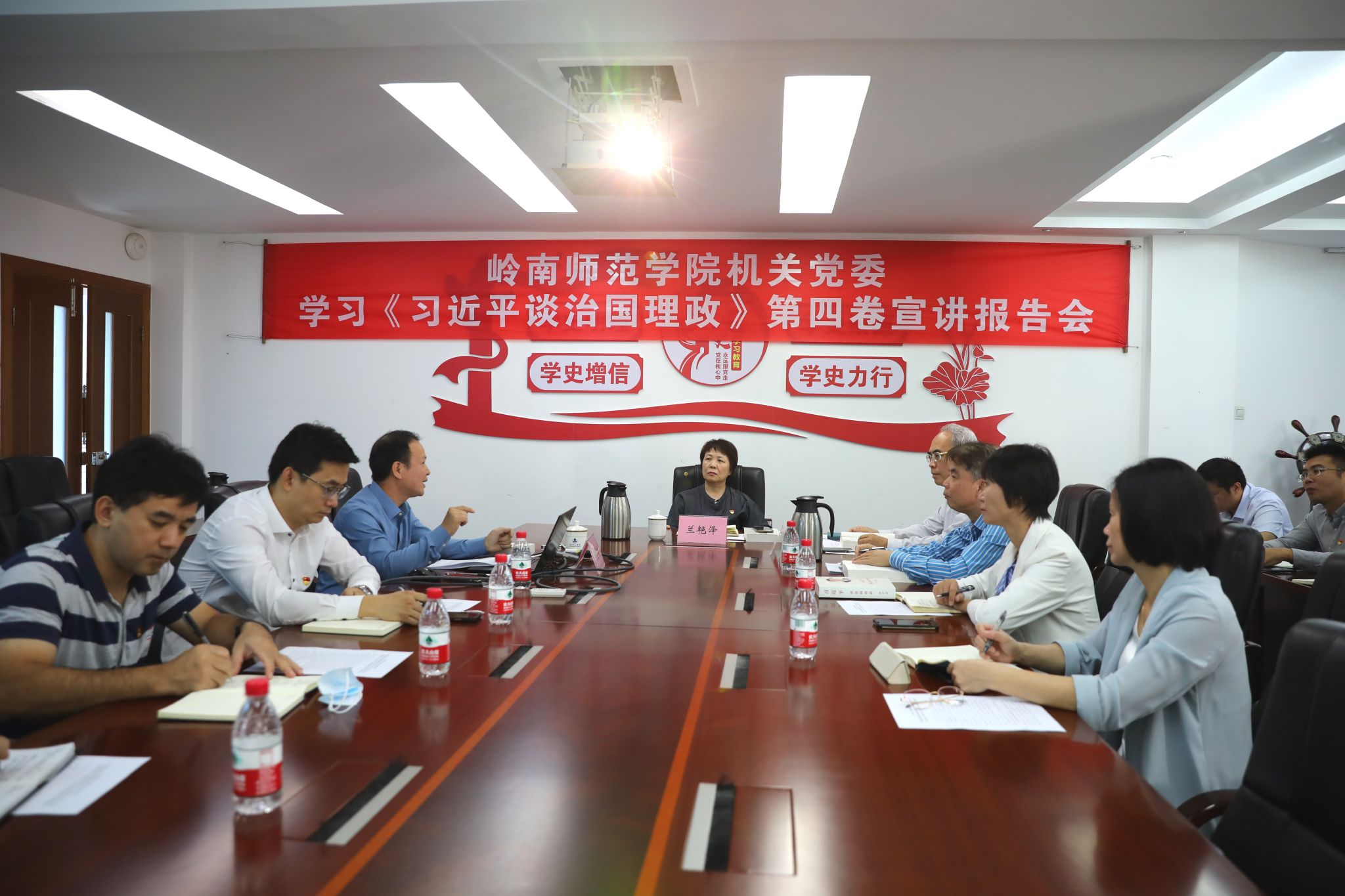岭师新闻中心讯:10月12日,机关党委举行学习《习近平谈治国理政》第四卷宣讲报告会。学校党委书记兰艳泽以党委办公室党支部一名普通党员身份出席报告会。学校党委理论宣讲团成员、法政学院院长刘鑫淼教授作主题宣讲,党委办公室主任、机关党委书记陈恕平主持宣讲报告会。