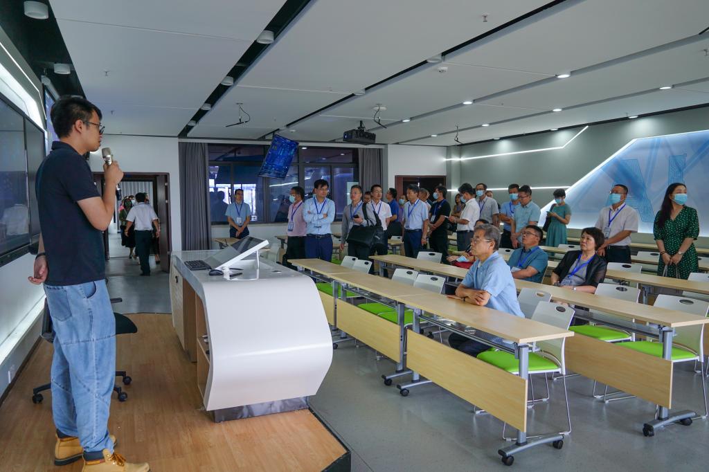 领导嘉宾观摩智慧教室(何艾洋 摄)
