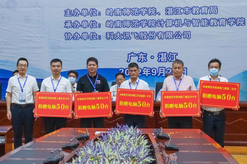 会上,岭南师范学院副校长金义富为南山镇中心小学、南山镇田头小学、廉江市安铺第一中学、南山镇白沙小学、南山镇第二中学等海岛学校分别捐赠了一批教育设备,以实际行动支持海岛教育发展。
