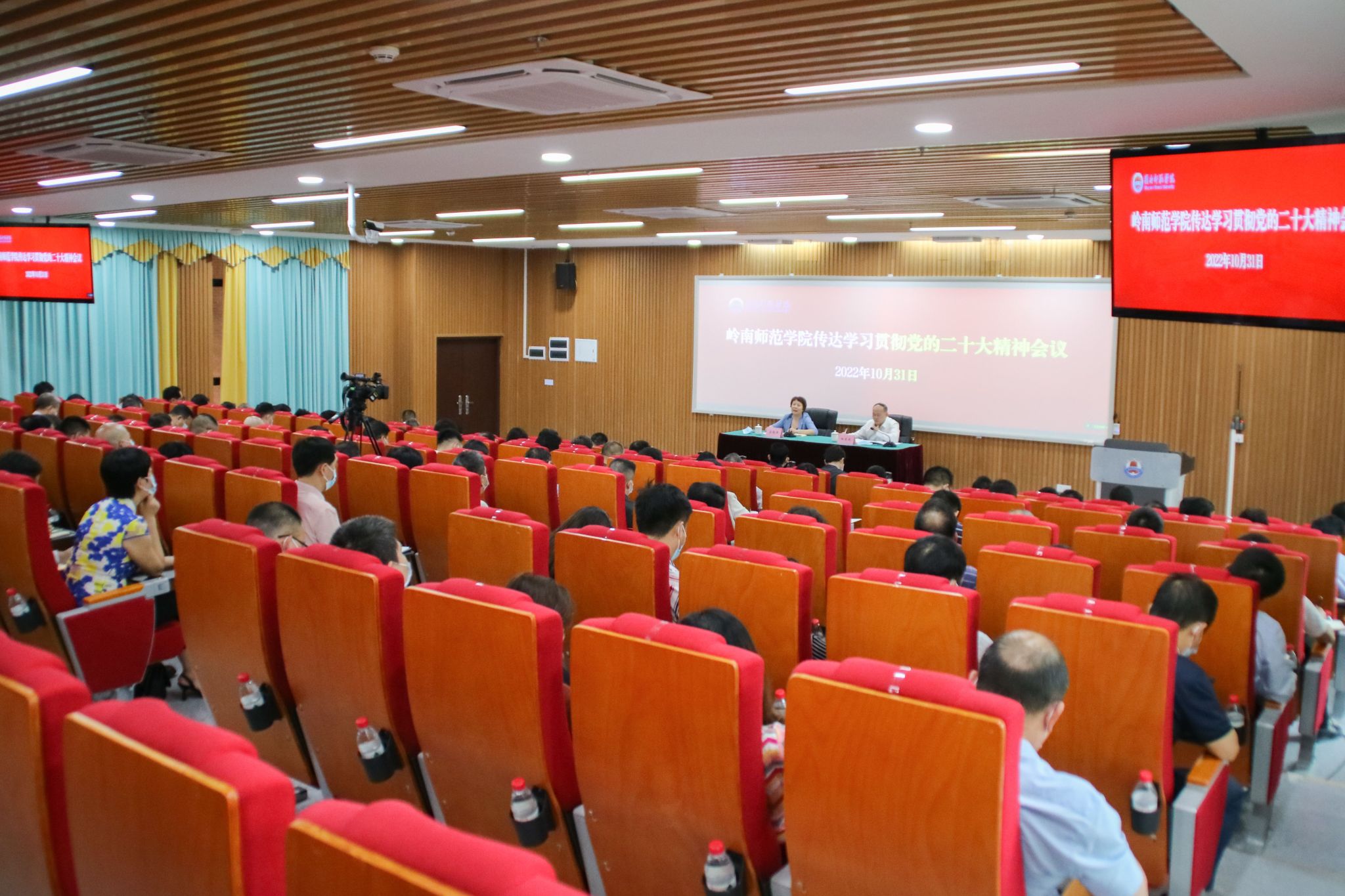 岭师新闻中心讯:10月31日,学校召开传达学习贯彻党的二十大精神会议,传达学习党的二十大精神,落实全省、全市以及全省教育系统学习会议要求,对做好学校学习宣传贯彻工作进行动员部署。党委书记兰艳泽主持会议,强调要“四心”聚力,推动学习宣传贯彻党的二十大精神在岭南师院落地落实。校长阳爱民传达全省、全市以及全省教育系统传达贯彻党的二十大精神大会等会议精神。党委副书记黄达海,副校长苏古发、戴黍、金义富、王胜,党委常委、宣传部部长刘坤章出席会议。