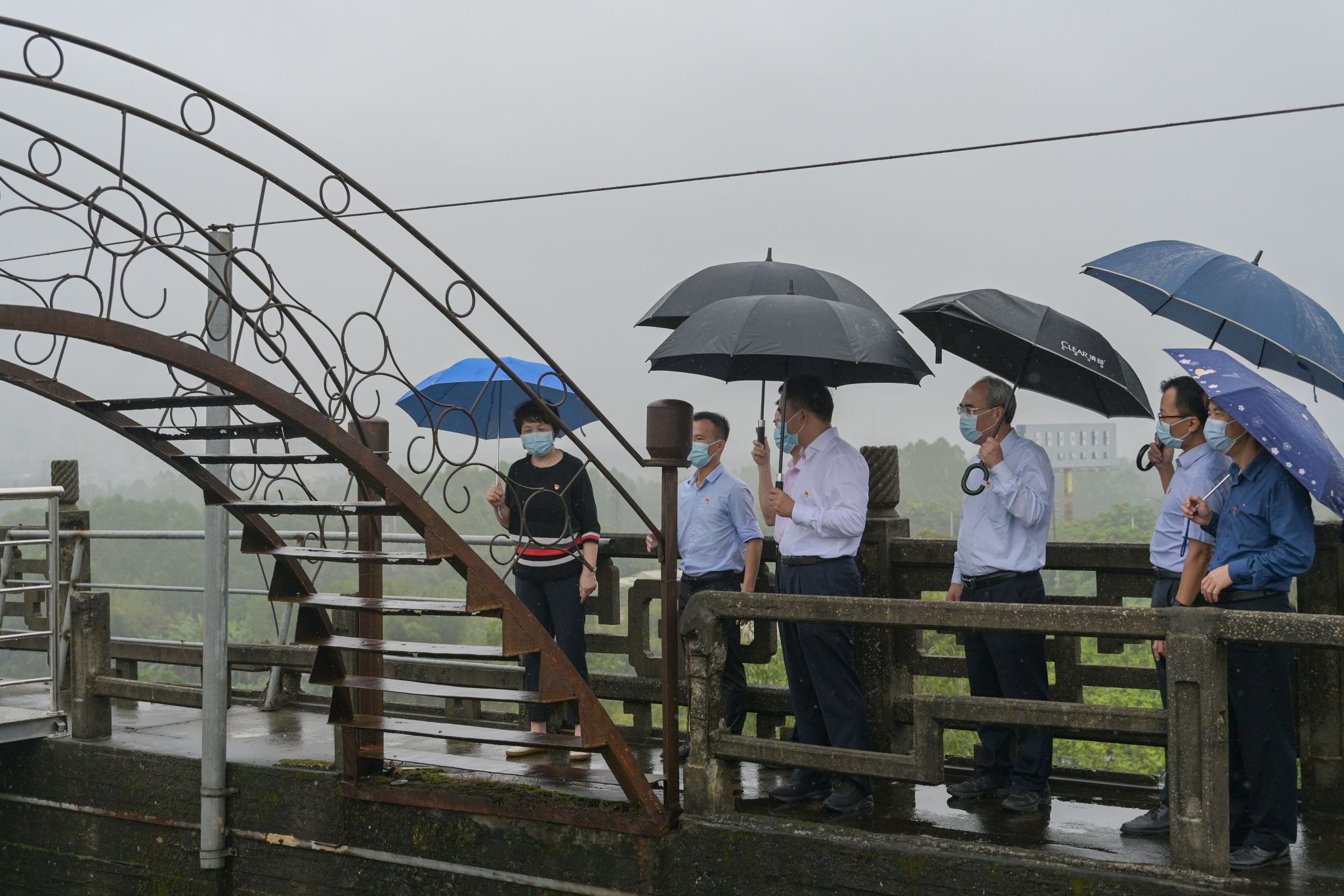 “伟大工程!伟大精神!”站在凌空最大槽高32.7米、全长1206米、宽可行船的“人造天河”之上,看着奔涌不息的运河流水,兰艳泽发出由衷赞叹。兰艳泽一行一早冒着细雨来到雷州青年运河东海河大渡槽现场体验,重走朱德元帅曾走过的视察路线,听工作人员讲述六十多年前雷州青年运河激情燃烧的建设历史,现场感受“建库开河”精神。