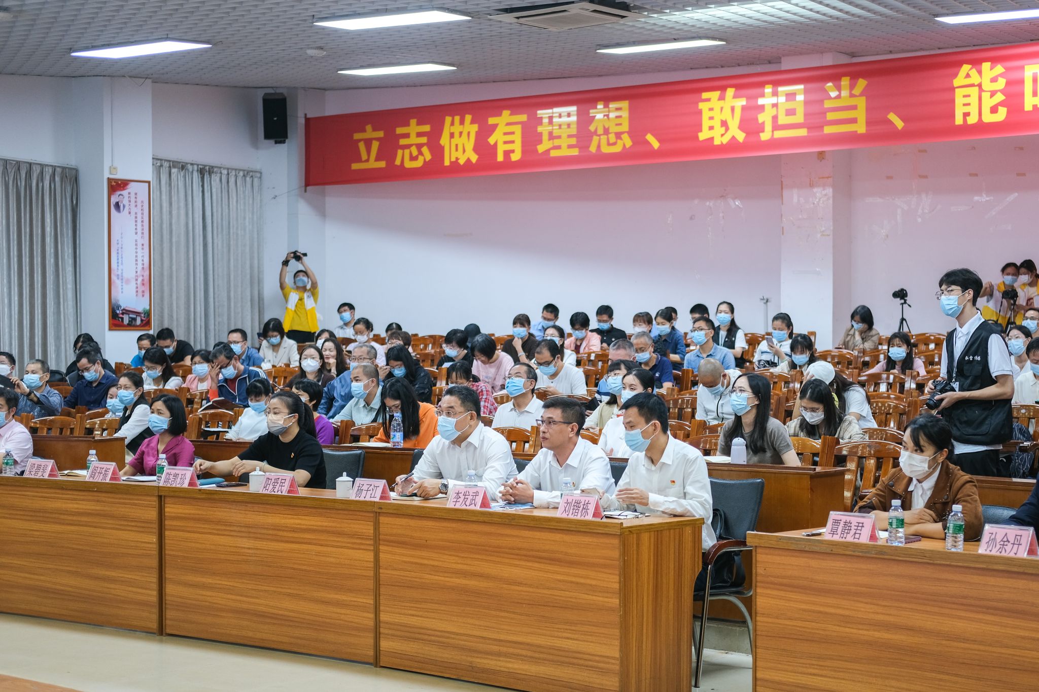 文学与传媒学院、生命科学与技术学院共有百余名教职工参加了会议。