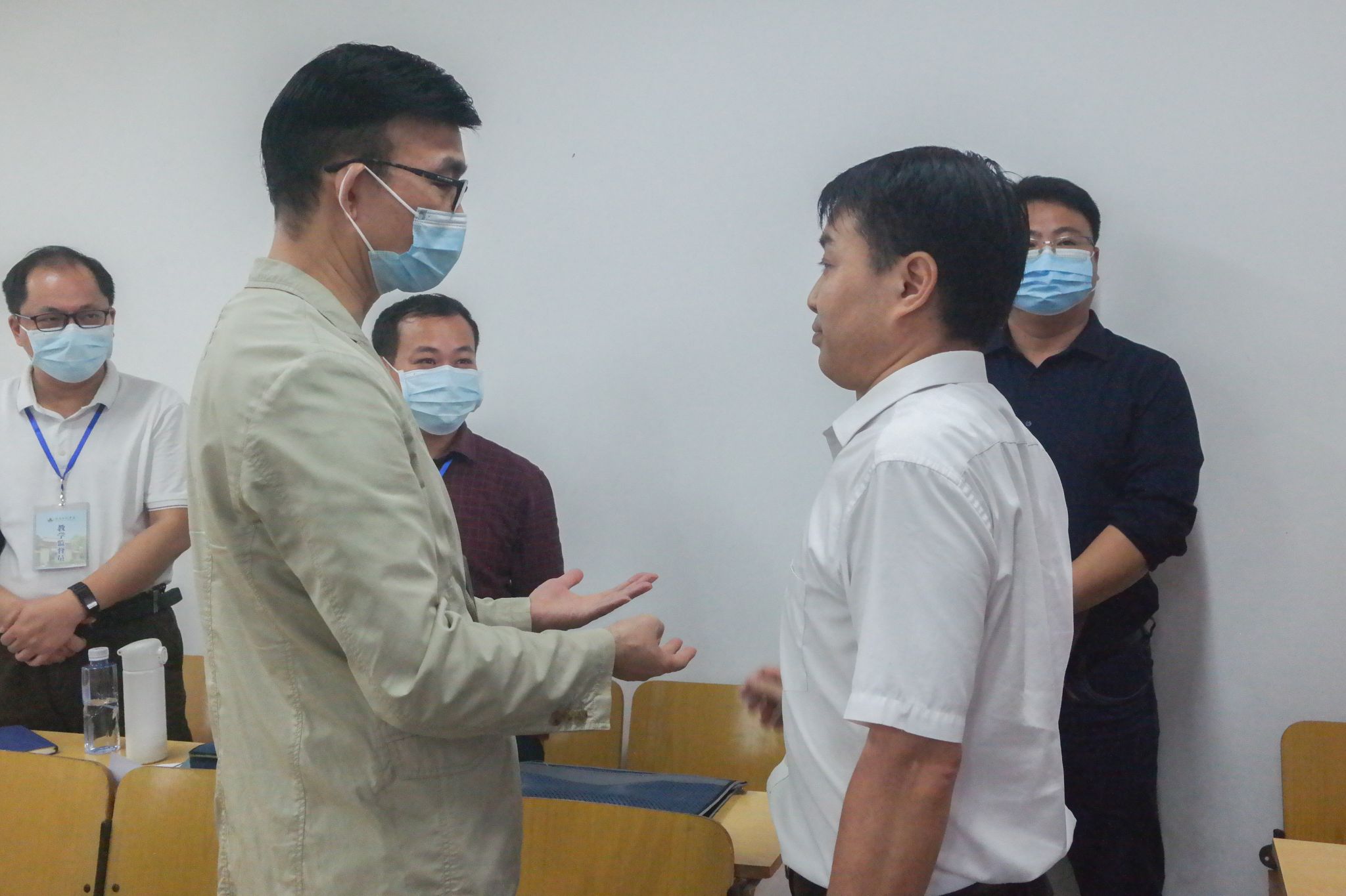 学校党委书记与授课教师亲切交流