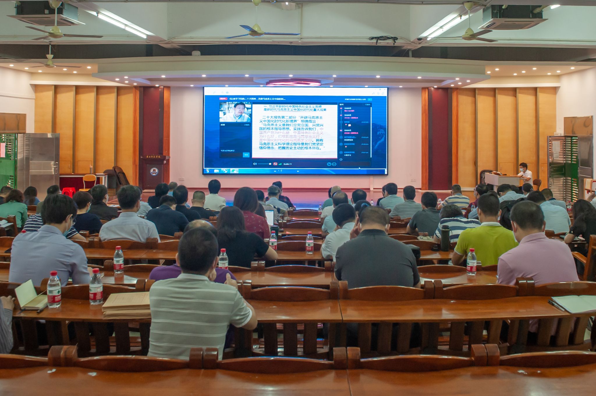 学校党委理论学习中心组成员、各二级单位党政主要负责人(含主持工作)在主会场国际会议厅参加会议,其他处级干部在分会场教三211参加会议,科级干部在各单位会场参加会议。