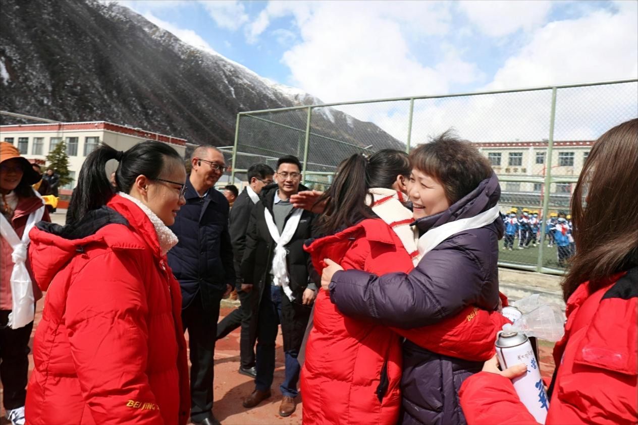 “同学们3月2日从学校出征,跨越山海,辗转四天四夜,经受了高原反应的初步考验。今天在高原会师,看到你们依然精神抖擞、神采奕奕、砥砺了‘万水千山只等闲’的意志,传承了‘缺氧不缺精神、艰苦不怕吃苦、海拔高境界更高’的‘援藏良驹’品质!”兰艳泽把学校第十二批西藏支教队22名队员送到林芝,深情勉励同学们用实际行动做好教育援藏安全底线的守护者、“援藏良驹”精神谱系的传承者和促进西藏基础教育高质量发展的志愿者,用智慧和力量继续谱写我校教育援藏高质量发展的新篇章。