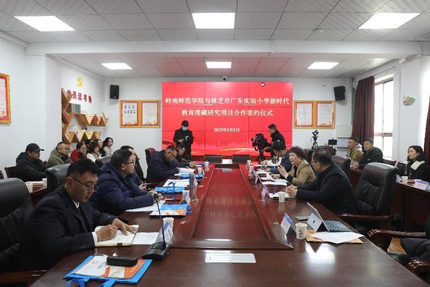 兰艳泽代表学校分别与林芝市广东实验小学、工布江达县娘蒲乡小学签署赋能基础教育发展高质量发展行动之新时代教育援藏研究项目合作协议,投入20万元,组织双方师生组建教研共同体,聚焦基础教育高质量发展的现实重点与难点问题,联合进行教学改革,联合培养教师队伍,联合申报教研项目,联合申报教育教学成果奖。
