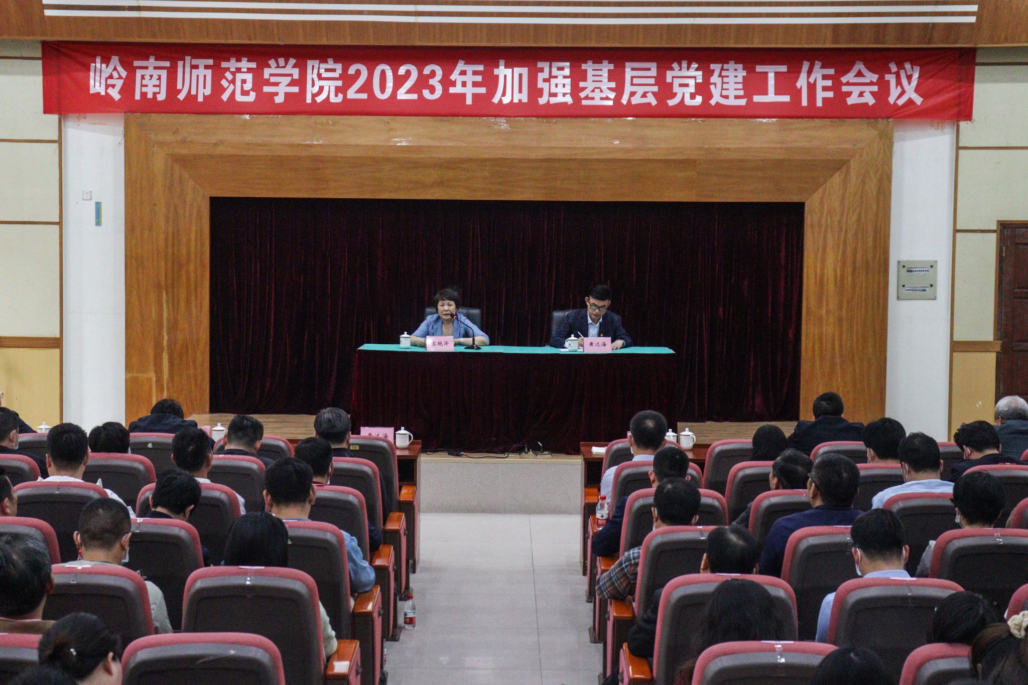 岭师新闻中心讯:3月15日下午,学校2023年加强基层党建工作会议在图书馆学术报告厅举行,会议深入贯彻落实党的二十大精神,认真落实习近平总书记关于加强基层党组织建设的重要论述精神,贯彻新时代党的建设总要求和新时代党的组织路线,进一步增强做好基层党建工作的责任感使命感紧迫感,以高质量党建引领推动学校各项事业高质量发展。学校党委书记兰艳泽出席会议并作总结讲话,党委副书记黄达海主持会议。