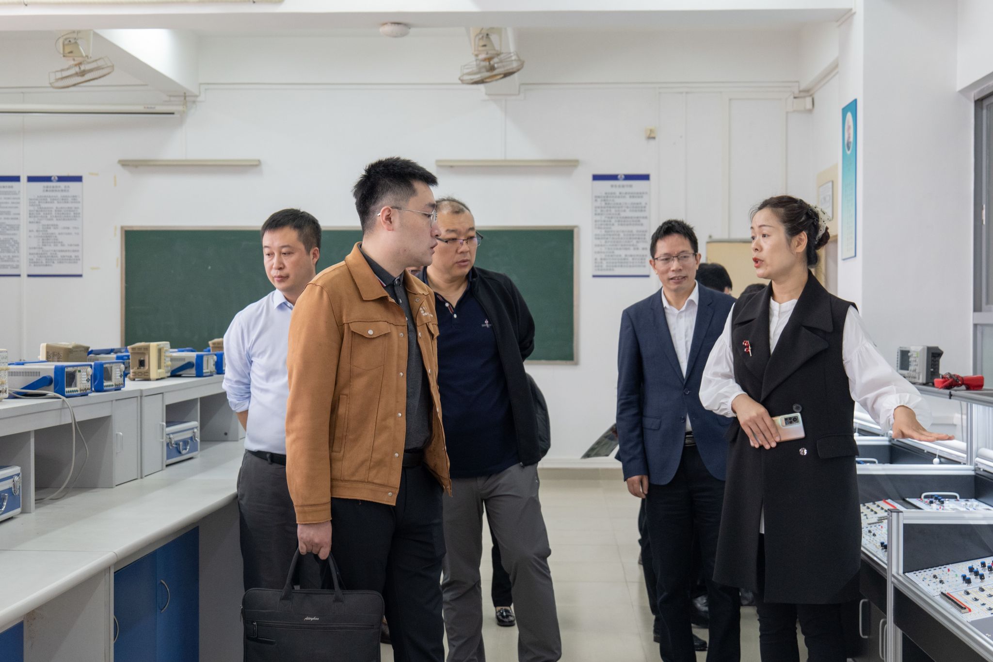会后,专家组一行到综合实验楼、第五教学楼参观电工电子实验教学示范中心、物联网应用技术实训室、自动化工程实训室、智能配电终端校企联合实验室、智慧教室、数字工厂联合实验室等,对学校智能电气专精特新产业学院的基础建设情况进行实地调研。