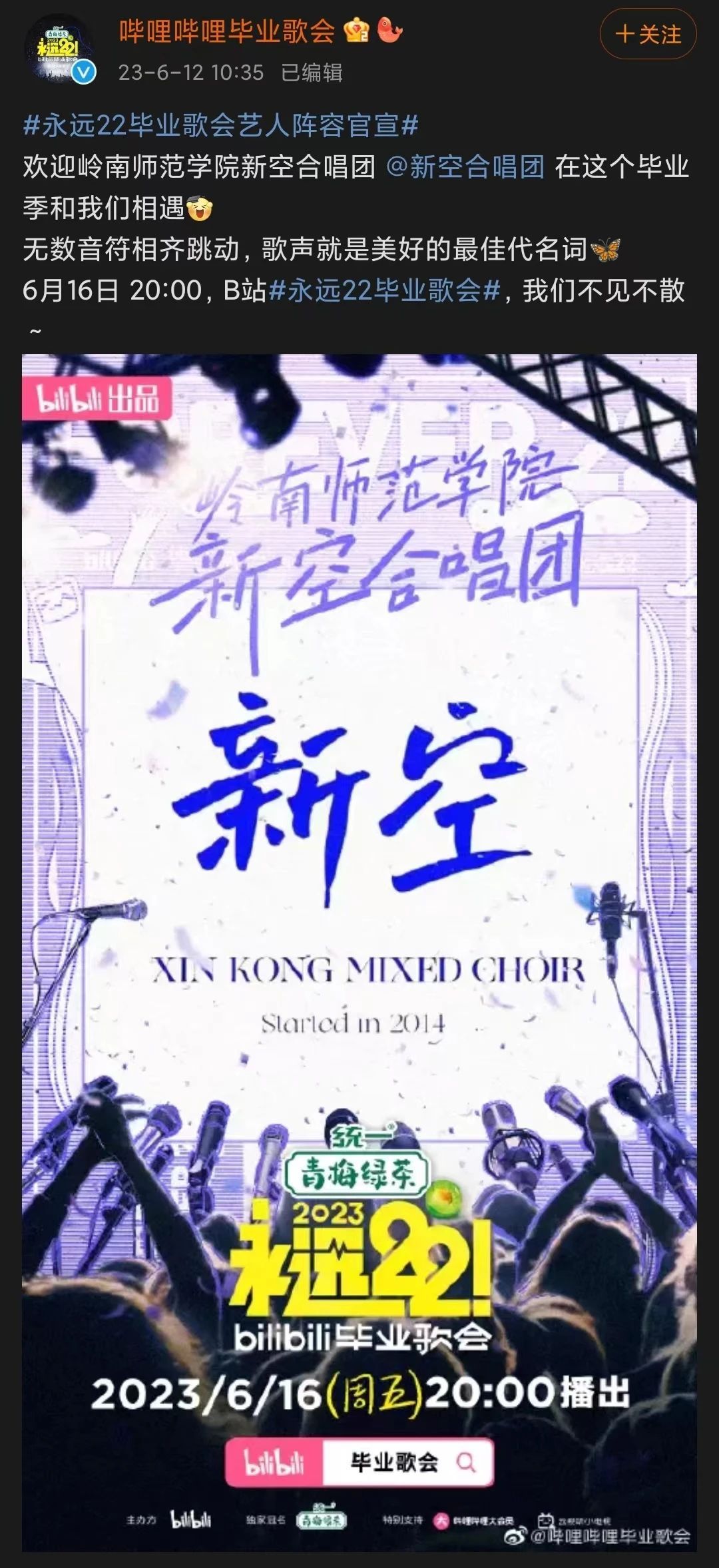 这个毕业季☀️来B站#永远22毕业歌会#🎓与岭师新空合唱团相遇吧!💞🎤无数音符相齐跳动,用歌声表达属于青春的故事~🎼亲爱的校友~6月16日(周五晚) 20:00🌈B站#永远22毕业歌会#一起来为岭师新空合唱团打call❤️❤️💪💪!!