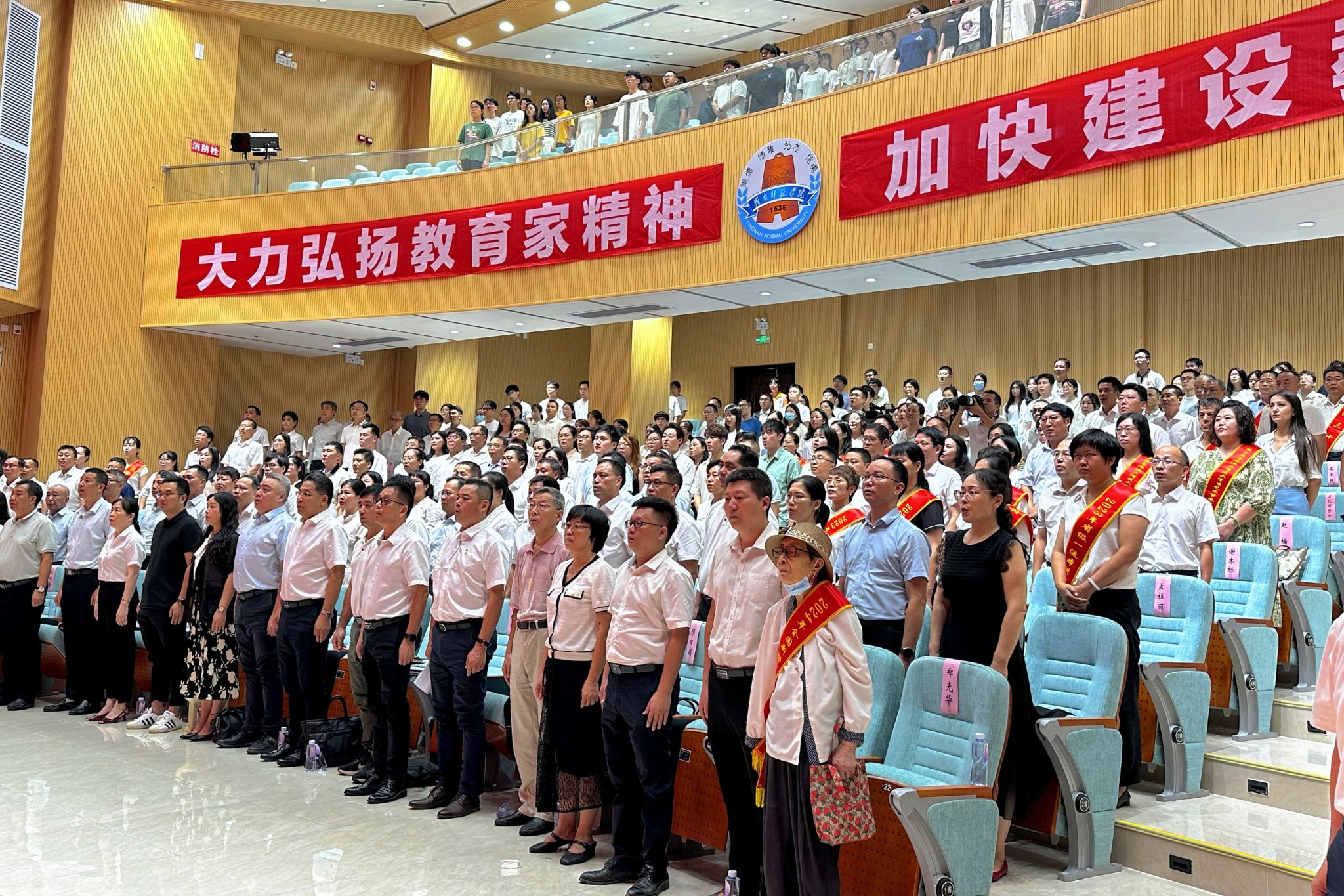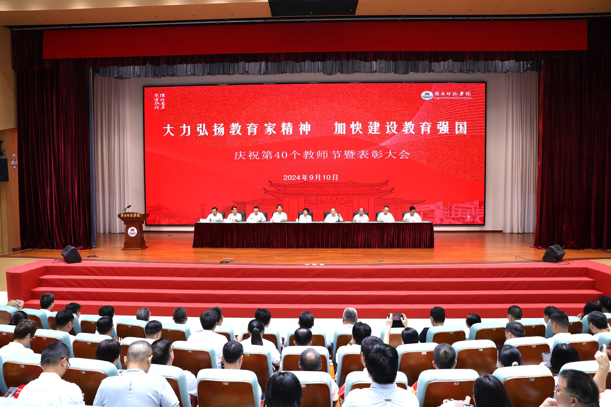 金义富宣读了《岭南师范学院2024年教师节表彰名单》。大会分14批次表彰了过去一年在教学、科研、管理等多个领域取得显著成绩、为学校赢得荣誉的先进集体和个人。