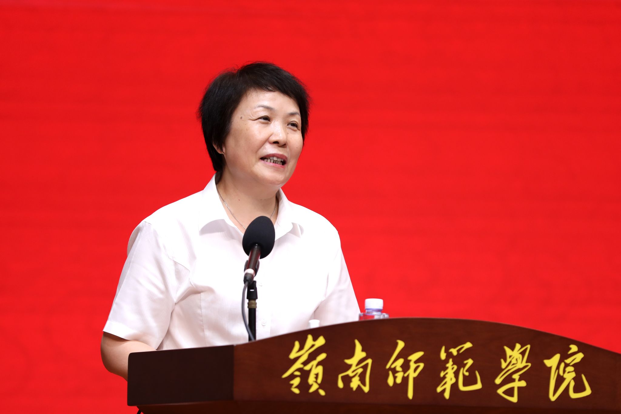 兰艳泽代表学校向受到表彰的先进个人和集体表示热烈祝贺,向全校教职员工致以节日问候,并向华南师范大学帮扶队对学校发展作出的贡献表示衷心的感谢。她通报了近一年来学校在办学层次、人才培养质量、学科专业建设、人才队伍建设、“双百行动”落实、办学空间、数字化赋能以及党建思政工作方面取得的突出成绩,指出这些成绩的取得离不开上级党委和主管部门的正确领导和大力支持,离不开学校党委班子成员的同心同德、团结奋斗,离不开全体岭师人的敢闯敢干、创新实干、埋头苦干。