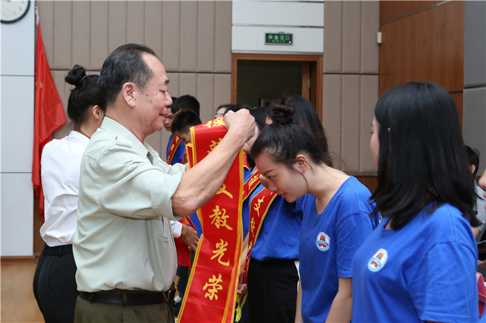 8月16日,我校第六批援藏支教实习学生出征仪式在国际会议厅举行。本次出征仪式有幸请来我校第一位援藏毕业生龙家玘校友为出征队伍授旗,湛江市首位援藏干部陈观如校友为援藏学生绶带,以及深圳一线著名导演植海洋校友为本次援藏行动拍摄纪录片。