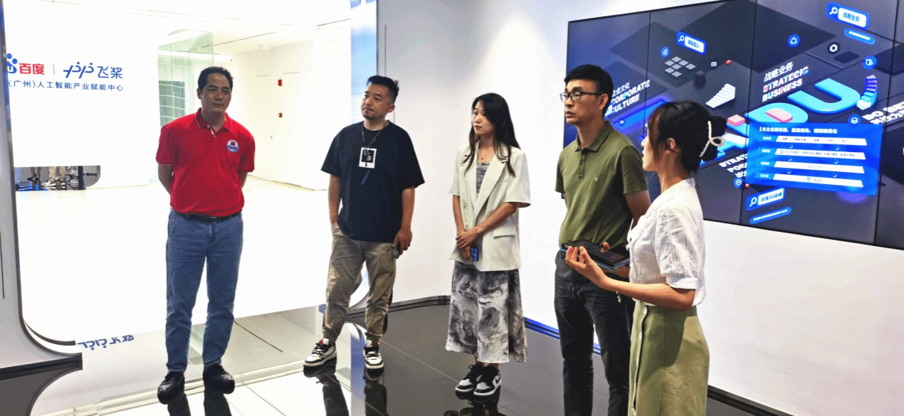 黄达海一行走进了广州名动漫数娱教育培训有限公司,与创始人张聪进行了洽谈,并参观了名动漫的战略合作单位百度飞桨(广州)人工智能产业赋能中心,了解人工智能在产业应用的最新前沿,现场就百度推出的“文心一言”“文化一格”进行了实践演示。双方就共建数字艺术产业学院、专业转型AI化、AI实验室建设、AI课程植入等方面内容进行了交流与商谈。