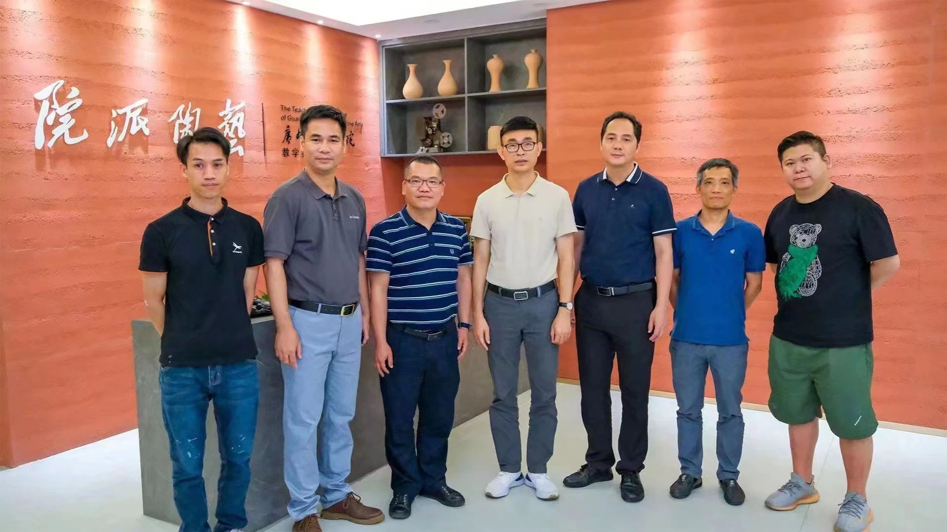 在广州院派陶艺工作室,黄达海一行与创办人黄强进行了深入的交流,了解院派陶艺的品牌策划和运作情况、规模,商谈共建专业实训和实践基础,助力打造高端的院派陶艺品牌,培养输送陶艺师资力量,探讨把陶艺培训打造为集美育与劳育于一体的艺术教育项目。