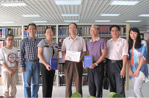 值学校纪念师范教育110周年之际,10月14日,八四届校友、湛江市委组织部副部长钟德校友返校赠送其三十年心血结晶之作《吴川音字典》一书,受到母校图书馆吴进书记、陈俊群馆长等领导老师的热情欢迎。