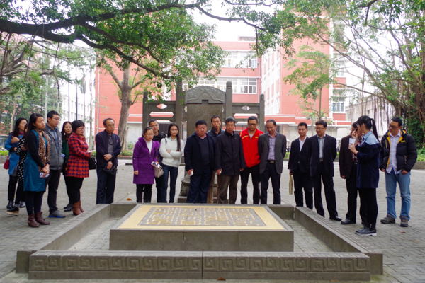 结合我校宣传片,李江凌向客人一行简短地介绍了我校基本情况。在校园文化建设方面,李江凌介绍称,学校一直秉承“人在哪里,教育在那里;景在哪里,教育在那里”的理念,着力打造“绿树成荫、花不间断、香飘四季、文化品位、师范特色”的南方园林学府,彰显出“传承文脉、彰显特色,润物无声、以景化人,以文化石刻蕴含教育力”等特点,形成了具有独特韵味的校园文化。