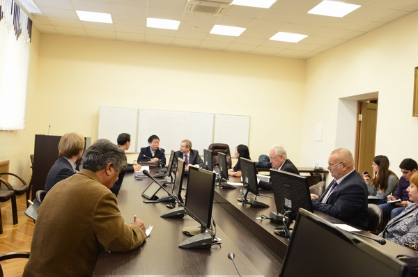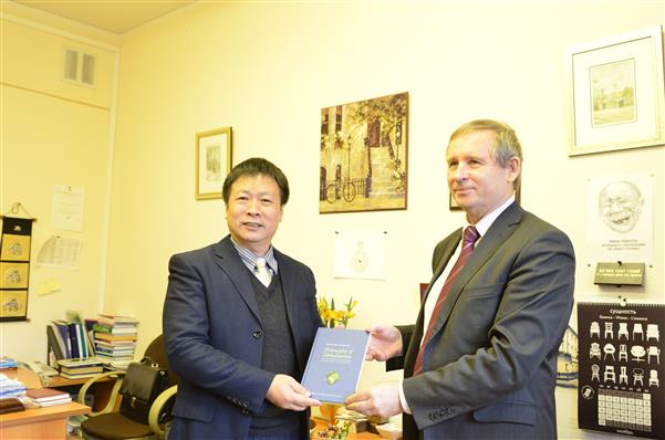 11月3日的交流主要在俄罗斯财经金融大学。 俄罗斯财经金融大学副校长Valery N. Soumarokov 在其办公室接待我们并介绍该校情况。俄罗斯财经金融大学成立于1918年,是俄罗斯排名前五的大学,设有本科、研究生、博士等学位。该校有着丰富的教学和人才培养经验,为俄罗斯培养了7任中央财政部长和世界各地众多银行行长。他介绍了俄罗斯财经大学接收国外访问学者的具体做法、交换生开展情况等,我们双方就师资及人才培养模式进行交流。随后,特别举办举办了圆桌会议。俄罗斯财经金融大学哲学社会科学系全体教师与我校考察团围绕全球性问题研究、爱国主义教育、社会热点问题研究等问题进行建设性探讨。这些探讨使我们深受启发,对于我们改进教学方法,更新教学理念,推进爱国主义教育和马克思主义中国化教育提供了许多有益的思路和信息。此外,哲学社会科学系主任、首席专家Prof. Chumakov 介绍其主办的俄罗斯哲学社会科学类的权威刊物《俄罗斯哲学学会通报》和《全球化时代》的录稿和发行的情况,并承诺可以与我校合作,通过该刊物可以将我校哲学社科类的优秀成果推广出去。然后,在哲学社会科学系主任Prof. Chumakov 的陪同下,我们参观了俄罗斯财政金融大学校园,在国际货币展览厅和名人文化长廊中感受俄罗斯财政金融大学的校园文化建设对高层次专业人才培养的深远影响。并瞻仰校园中一直保留的马克思像。