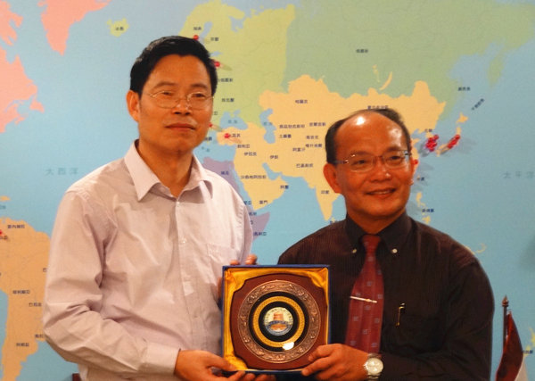罗海鸥校长与台南大学黄宗显校长交换学校纪念品