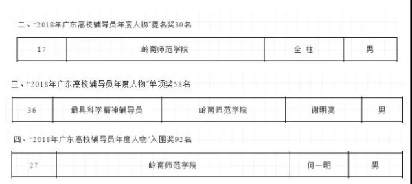 “2018年广东省高校辅导员年度人物”评选活动结果