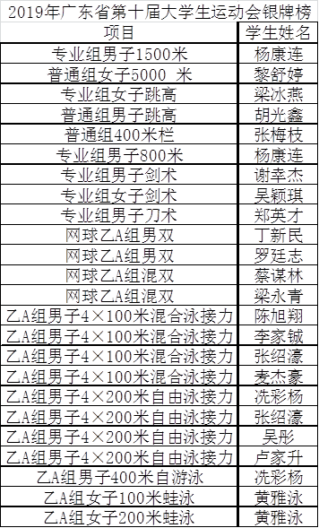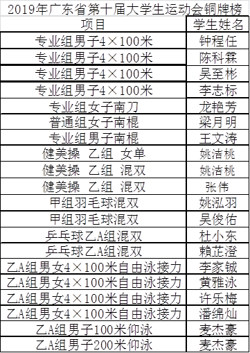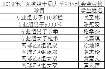 据悉,广东省第十届大学生运动会由广东省教育厅、广东省体育局主办,共有来自全省133所高校、1025支队伍共17000多人参与,参赛高校、队伍数量和参赛运动员均创历史新高。我校代表队38名领队及教练员、159名运动员参加了田径、游泳、篮球、排球、足球、乒乓球、羽毛球、网球、武术、健美操等10个大项150个小项的比赛和科学论文报告会评选。