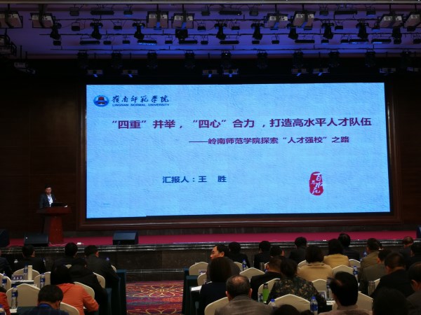 我校与长春师范大学、江苏第二师范学院、河北民族师范学院、衡阳师范学院一同获邀,围绕论坛主题作院校经验交流。近年来,在学校党委的有力领导下,学校人才工作取得了良好的成效,得到省教育厅的高度评价,为学校亮点工作之一。在论坛上,王胜代表学校做题为“‘四重’并举,‘四心’合力 ,打造高水平人才队伍”的经验交流,向与会代表介绍了我校探索“人才强校”的道路,取得了良好的反响。