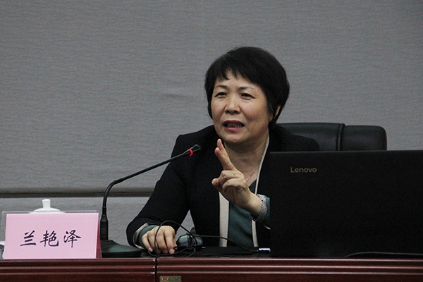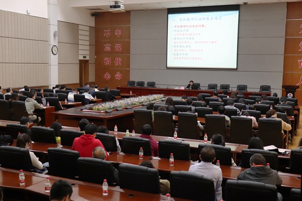 兰艳泽结合学校实际,用详实的数据和生动的图文分析了我校的专任教师队伍的学历、职称、学缘、年龄和性别结构。她指出,我校专任教师队伍规模适中、结构合理、顶尖人才素质高,但也存在人才队伍规划性不强、整体水平不高、学科团队滞后、发展不平衡的问题。她在肯定管理干部、后勤队伍的默默耕耘、辛勤付出的同时,也指出这两个队伍面临年龄日趋老化、本职年限较长、专业程度不高的困境。