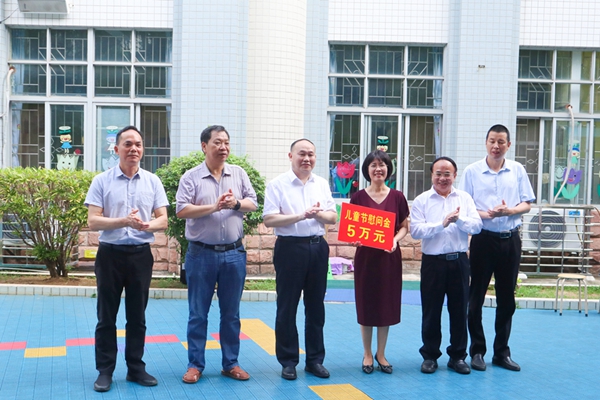 岭师新闻中心讯:“小朋友们好,儿童节就要到了,祝大家节日快乐!”在“六一”国际儿童节到来之际,5月30日上午,校长阳爱民在副校长苏古发的陪同下率队到岭南师范学院幼儿园开展慰问活动,与全体师生一起参加升旗仪式,为小朋友们送上节日祝福,并向幼儿园送上慰问金,寄语广大幼儿教育工作者关注少儿成长、支持学前教育事业发展。