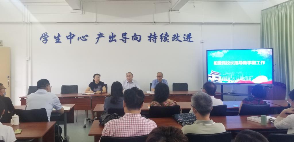 8月31日下午,校长阳爱民在教三501室出席文学与传媒学院2022年秋季新学期教职工大会,代表学校送上亲切问候,并提前寄予教师节祝福,勉励全体教职工为奋力推进学校高质量发展做出新的文传贡献。