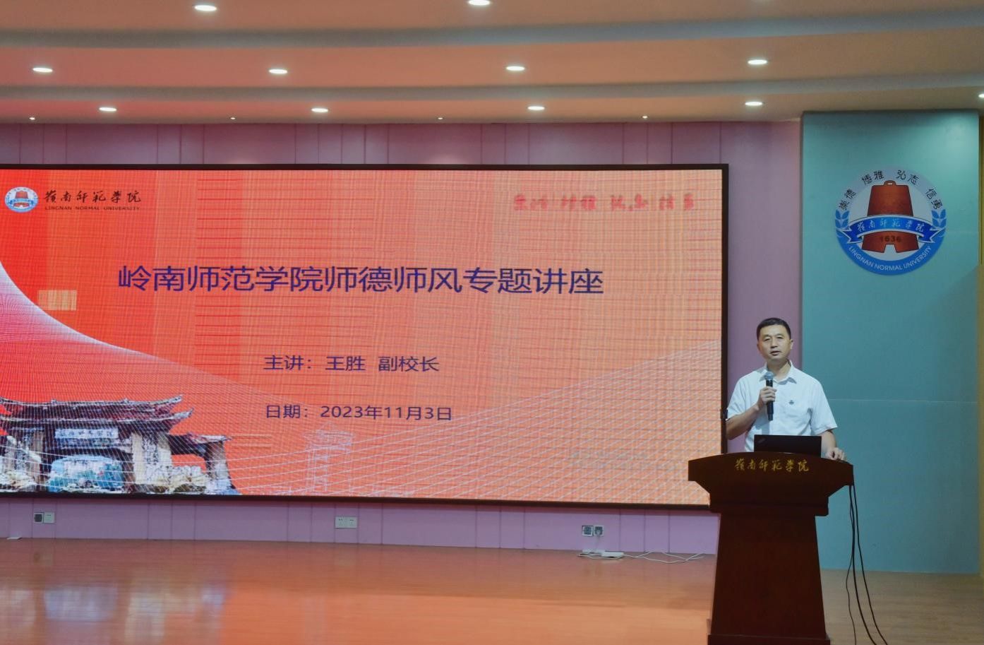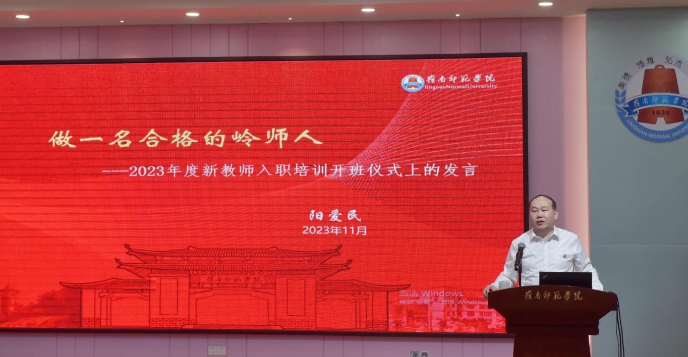 11月3日上午,岭南师范学院2023年度新教工入职培训开班典礼在学校第三教学楼311报告厅举行。校长阳爱民出席典礼并为新入职教工代表颁发校徽,典礼由副校长王胜主持。