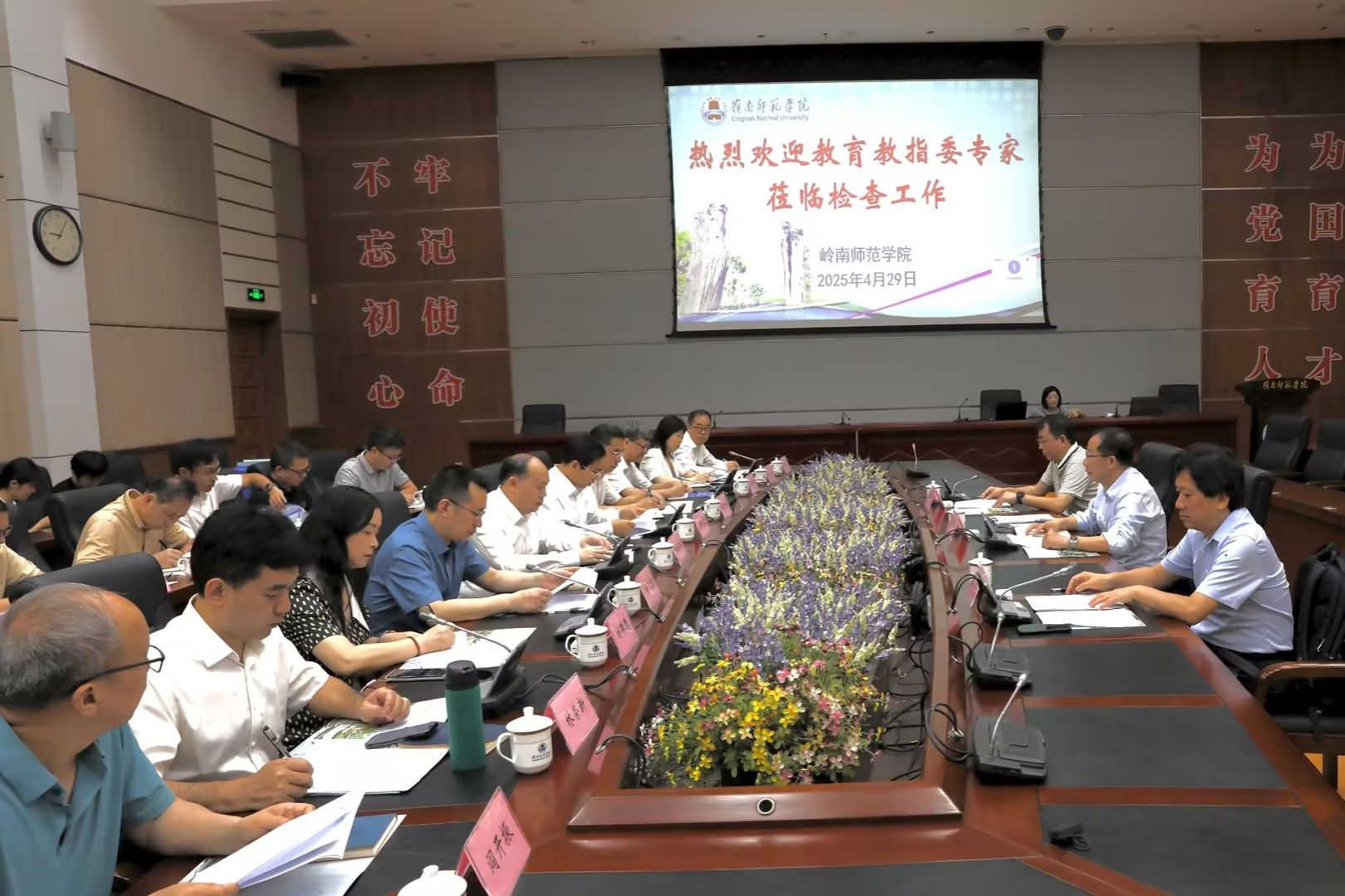 阳爱民对专家组来学校指导工作表示热烈欢迎,并从办学历史、学科专业、人才培养等方面介绍了学校和教育硕士学位点的基本情况。他表示,学校未来将坚持“12355”发展战略,高位谋划“十五五”规划,科学规划未来10年学科专业整体布局,全力推动学校教育硕士人才培养依托高质量学科基础与特色实践育人模式,为粤西地区基础教育领域培养优秀师资提供重要支撑。