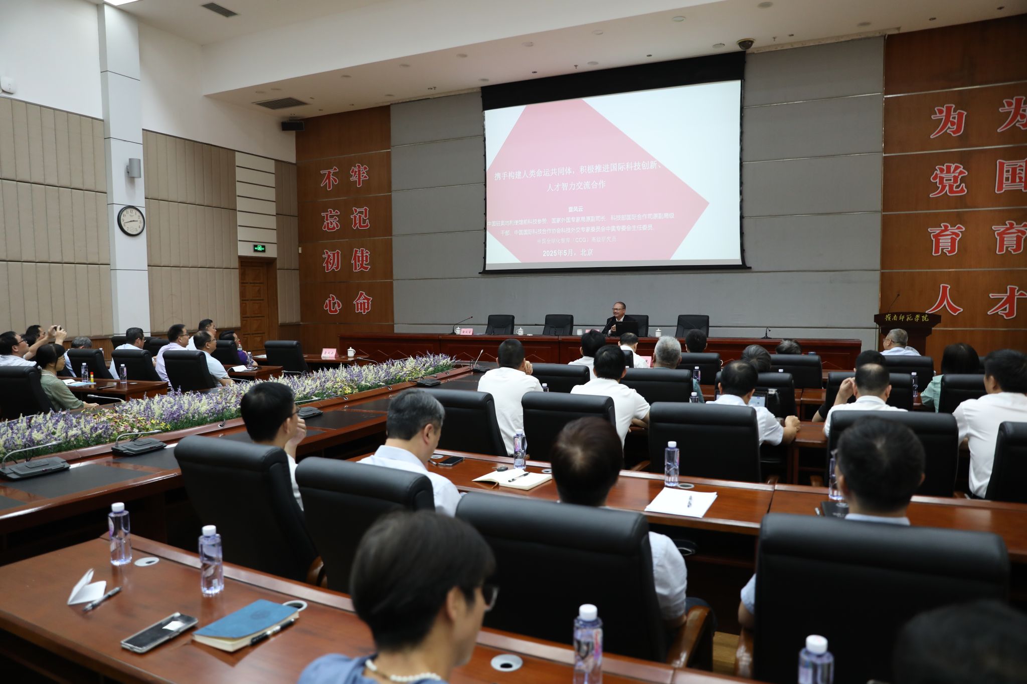 “国际合作大有可为。”雷风云以《推进构建人类命运共同体,积极开展国际科技、人才交流合作》为题开展讲座。他全面解析国际科技与人才交流合作的宏观背景和政策导向,分享中奥、中欧等中外科技创新与人才合作案例,生动展现国际交流合作的魅力和价值,并通过全球科技合作与人才智力交流热点方向和主要模式的分析,为学校从国家战略高度开展国际交流合作指明方向,提供极具针对性和可操作性的建议。