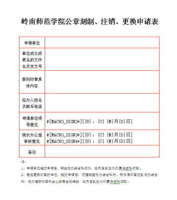 公章刻制、注销、更换申请审批 OA流程图及表单