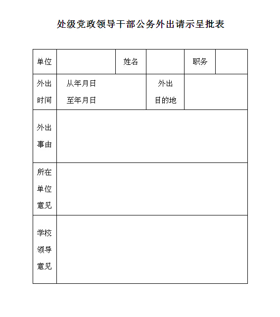 处级党政领导干部公务外出请示呈批流程 OA流程图及表单