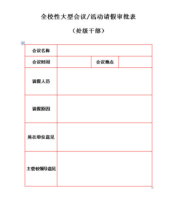 全校性大型会议/活动请假审批(处级干部)OA流程图及表单